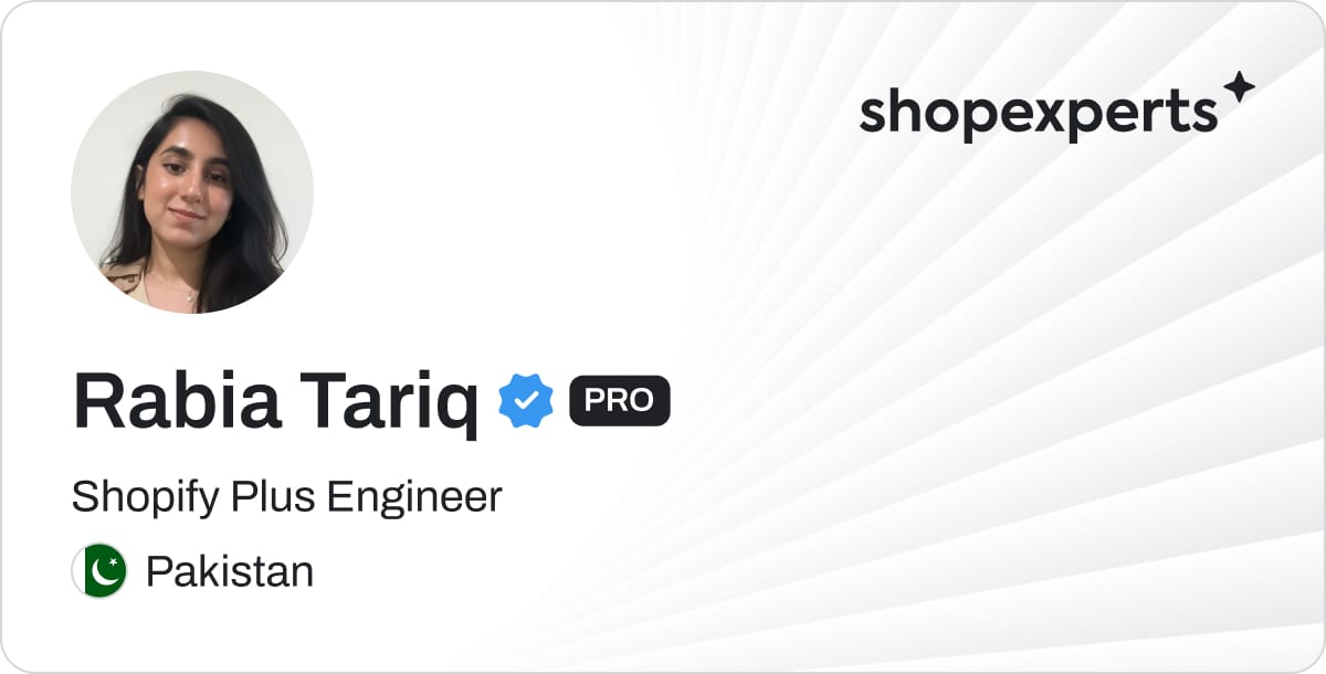 โ Rabia Tariq โ Shopify Plus Engineer ยท โญ 5.0 (13 reviews)
